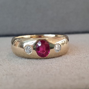 Központi foglalatban ovális csiszolású szintetikus rubin
